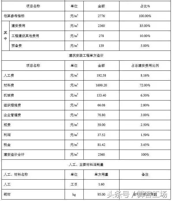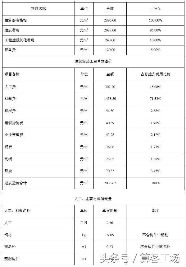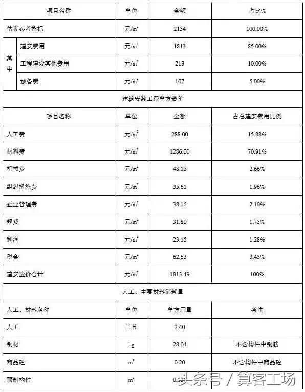 《定额》中对8类PC率(装配率)不同的装配式混凝土住宅及装配式钢结构住宅工程的投资估算分别给出了参考指标,这使得计算装配式建筑的成本提供了清晰、统一的标准和依据。